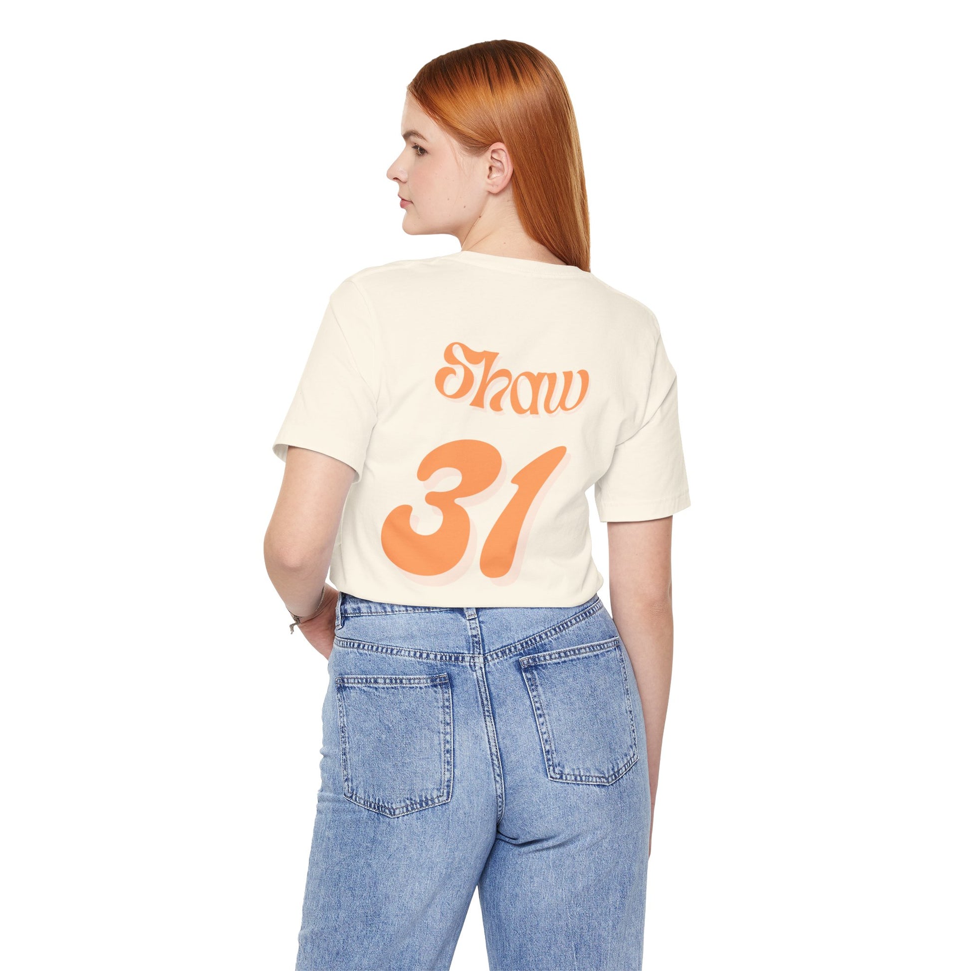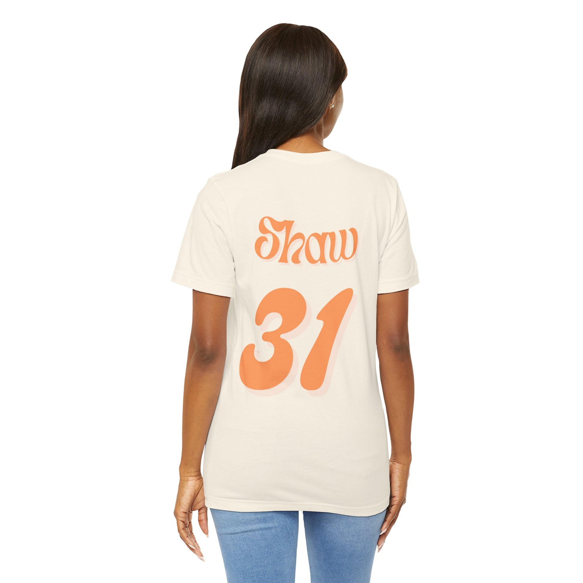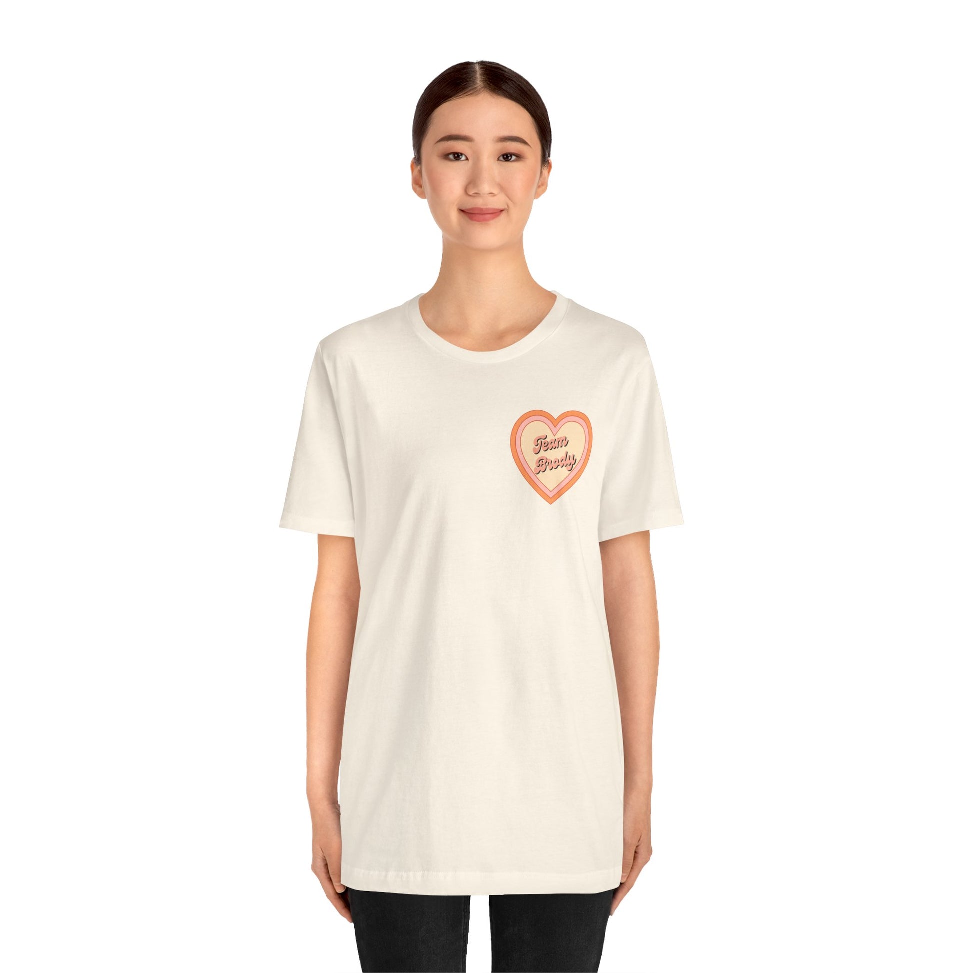 A unisex jersey short-sleeve tee with a heart on the front that says "Team Brody" and on the back, it says "Shaw" with rider number 31, styled like a motocross rider's jersey.
